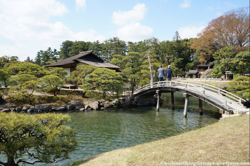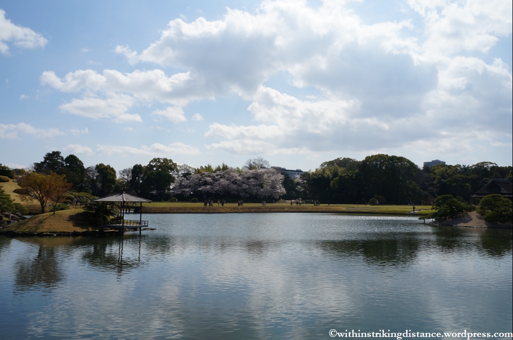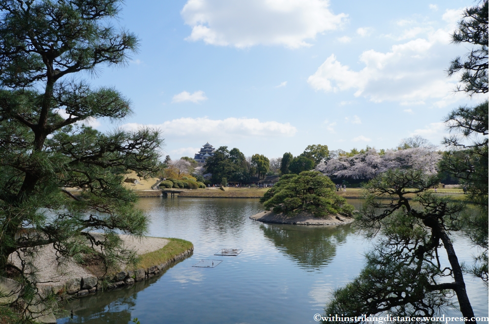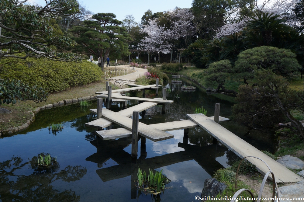 The garden is an easy +/- half-hour walk along fairly level streets from Okayama Station, but the time and effort required can be reduced by taking a tram or bus closer to the site. I settled on the tram, got off at the Shiroshita stop, and enjoyed a pleasant stroll (read: well nigh lost myself) among some of the city’s backstreets before finding the bridge that led straight to the main entrance.