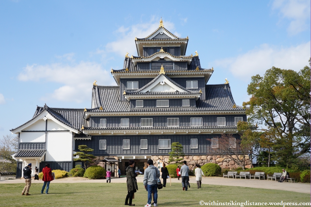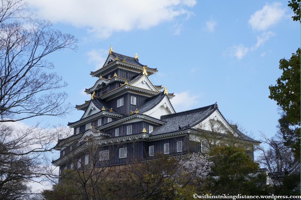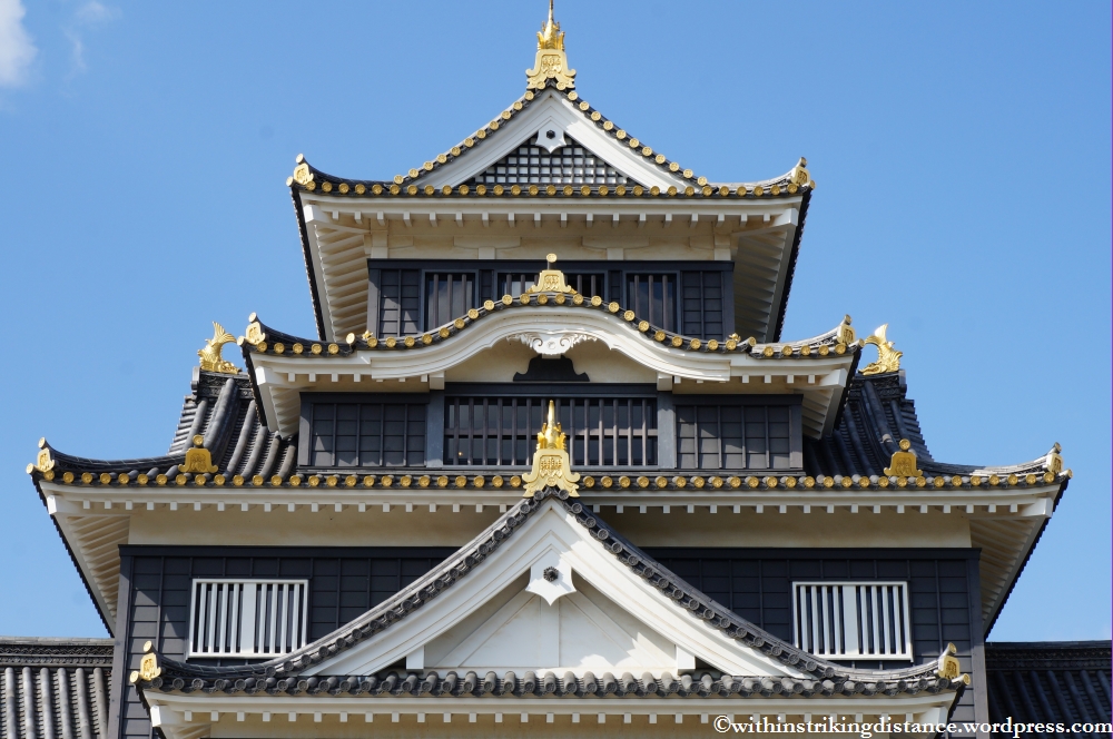 One of the garden’s exits led me to a bridge that terminated near the foot of the city’s other famous attraction: Okayama Castle. Originally constructed in the late 16th century, the castle tower was destroyed by Allied bombing during the Second World War and rebuilt in concrete two decades later. The inside houses a museum and looks rather disappointingly modern, but the outside was apparently done very accurately and looks quite impressive.