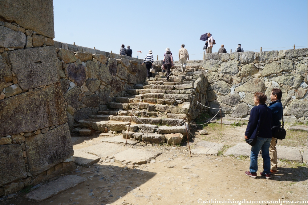 Some of the castle’s fortifications, including the base upon which the tenshu once stood. A few parts of the castle defences had been lovingly restored, with sections of plastered walls rebuilt on top of the surviving stone foundations.
