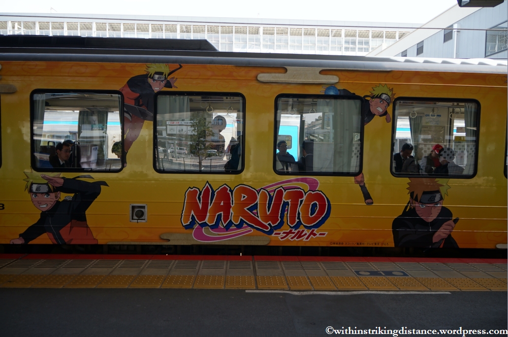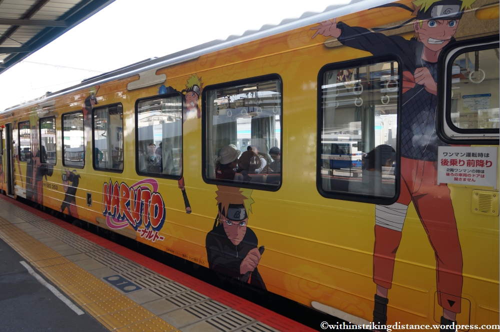 At the station, I was very pleasantly surprised to find that the train I was about to board – a KiHa 120 DMU – had those decorated carriages that the JR network puts out for limited periods (mainly for promotional purposes). This particular one had a loud, colourful Naruto theme.