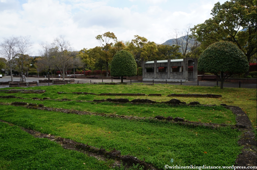More interesting than the donated memorials are the remnants of buildings that once stood in the area before being obliterated by the atomic bomb. The Urakami Branch of the Nagasaki Prison once stood on the site of the Peace Park, and some of its ruins have been preserved for posterity. 134 people in the prison compound (including staff and inmates) were killed by the blast.