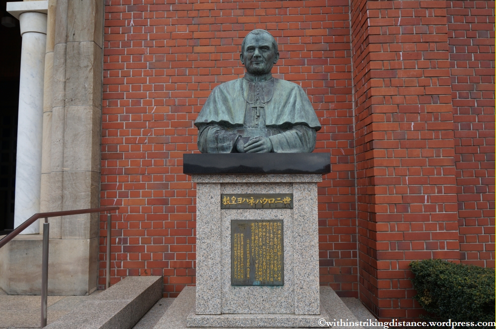 No photographs of the interior. I believe there were signs posted at the door warning against picture-taking, but even if this were permitted, I’d have refrained from doing so as there were already people inside and I wouldn’t have wished to cause the slightest disturbance. (Besides, I had no business snapping pictures when I should be on my knees praying in preparation for Mass.) To describe the interior in a few words: solid Gothic architecture, simple but very dignified, with a massive sculpted wooden reredos dominating the sanctuary area. It all looked very classic and ancient, which was why I was rather shocked to learn later that the church had been heavily damaged in the 1945 atomic blast and is mostly a post-war restoration. I admire the local community for rebuilding their parish church in a suitably authentic and timeless style, rather than replacing it with a soulless modernist building that might seem avant-garde for a few days but would quickly date into insignificance.