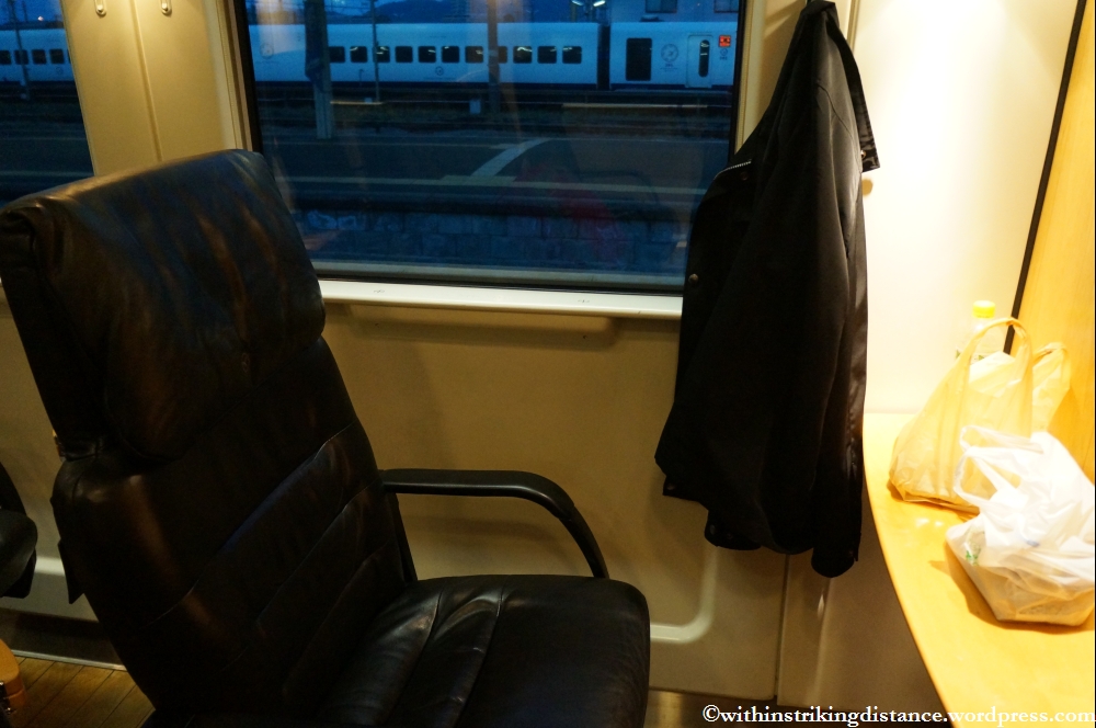 She’s quite a looker, this train: reclining leather seats (felt real too, not like faux upholstery), wood parquet floors, wall-mounted light fixtures. See that glass wall between the driver’s cab and the passenger cabin? It frosts over at the flick of a switch when the train is parked, then goes completely transparent when the driver has settled in and starts the train off on its journey, giving front-row passengers a great view out through the windshield. (At least, that was the case when I rode this same train to Nagasaki and the Green Car was at the front end; this time the Green Car was hauling the rear and the seats were rotated to face away from the glass wall.)