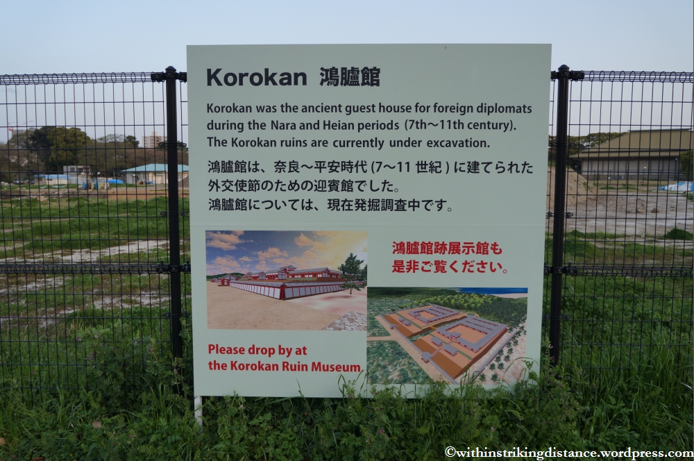 The site of a former baseball field in the castle grounds has been a major excavation area since 1987, when the ruins of a Heian-era korokan (diplomatic guest house) were discovered. Archaeological work is still under way in the fenced enclosure that surrounds the remains.