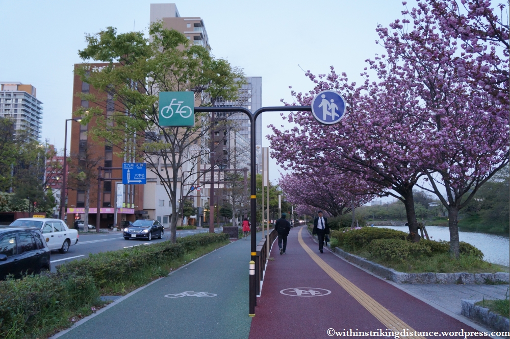 After checking in and seeing to my luggage at the hotel, I popped out to make the best of what little sunshine remained. I had to choose a place to visit, and fast – options were running out as quickly as the light was fading away. I knew that most museums would already be closed for the day, and the city’s famed yatai (roadside food stalls) would not reach the peak of their trade until later in the evening (in any case, with an early departure the next morning I was determined to make an early night of it). So I fell back on my default formula, which should be quite familiar to the readership by now: “Is there a castle in the area?”