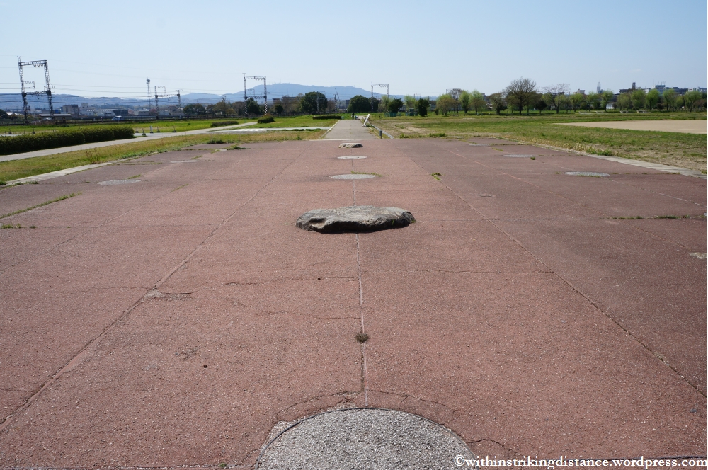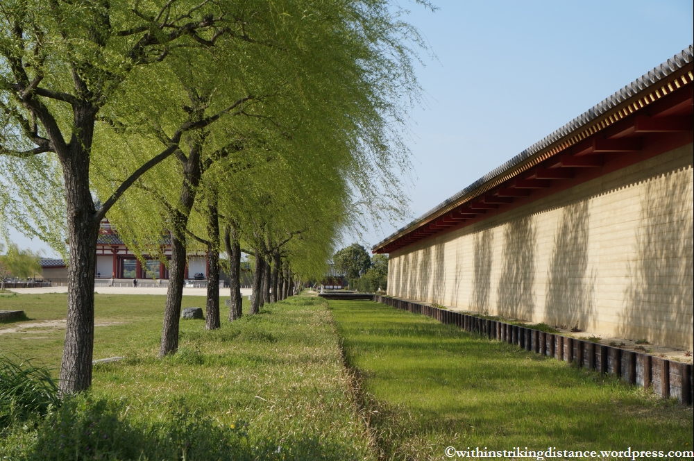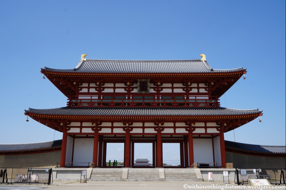Behind the gate, a long footpath leads to the former heart of the palace compound. Back in the Nara Period, this would have all been within the palace walls, which means that the Kintetsu railway line we see in the picture is running through what was once the Emperor’s front yard.