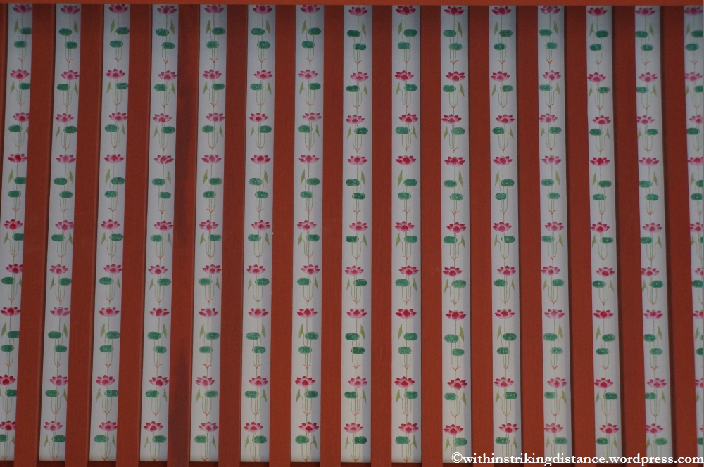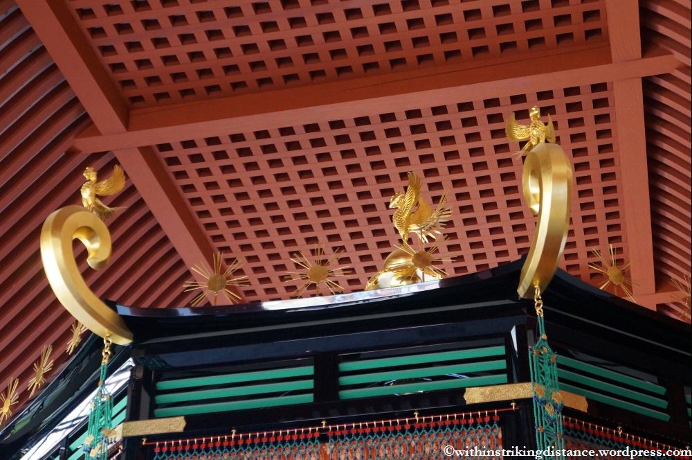 Guides were on hand to offer explanations to visitors. I fell in with a friendly chap who spoke almost no English, but my limited Japanese and his enthusiastic gestures helped with the exchange of information. He eagerly pointed out various architectural features, repeatedly encouraging me to look up and admire the splendid artwork covering the ceiling.