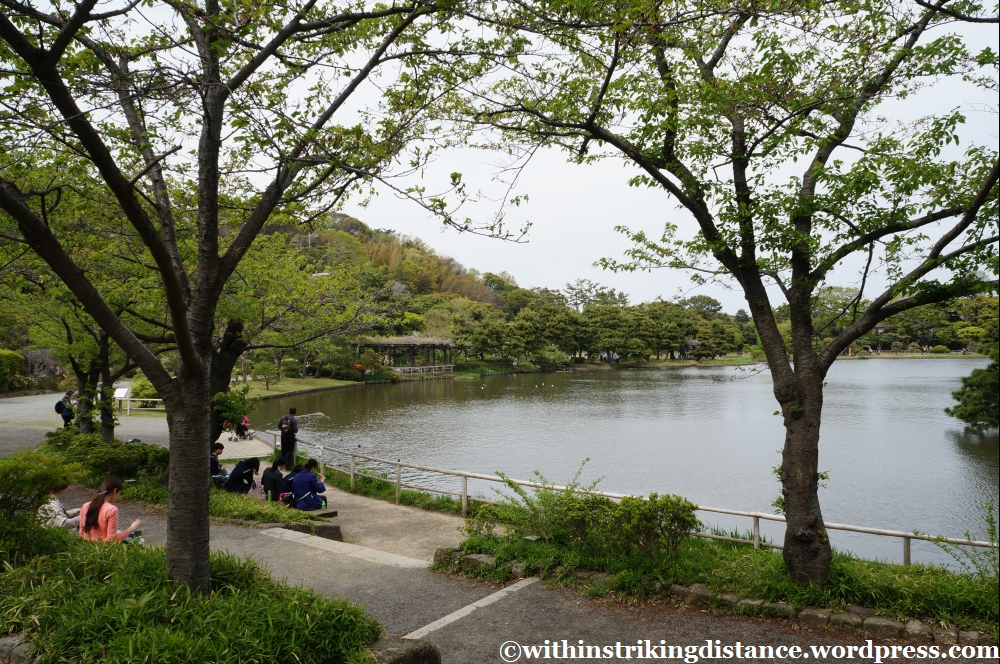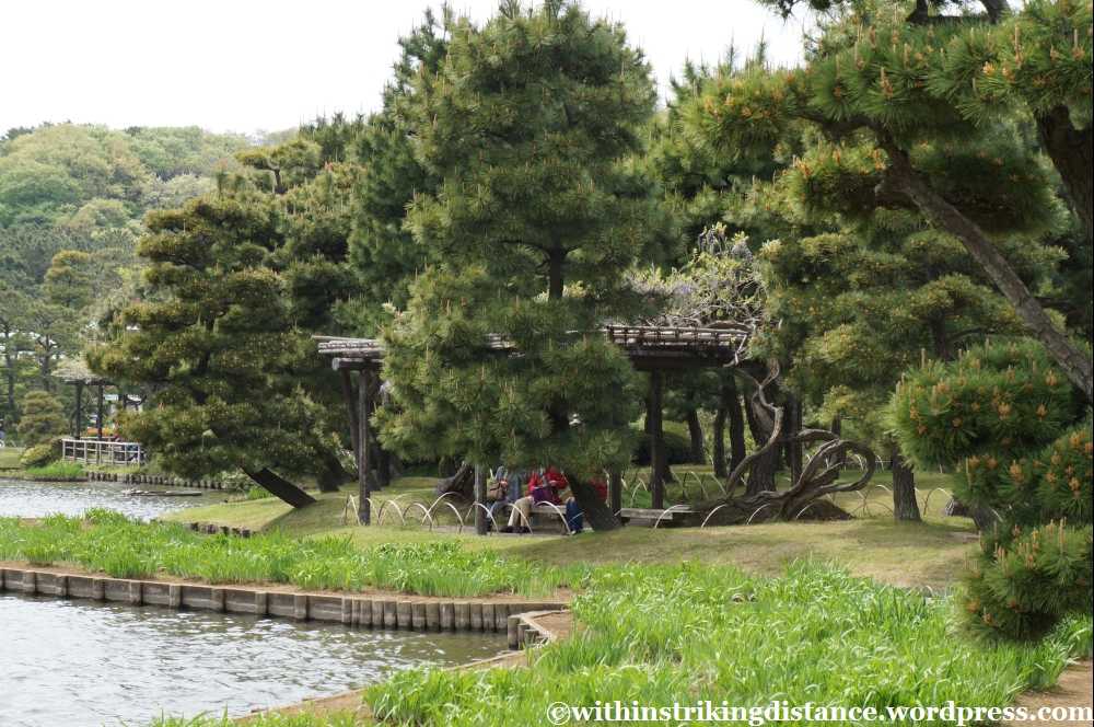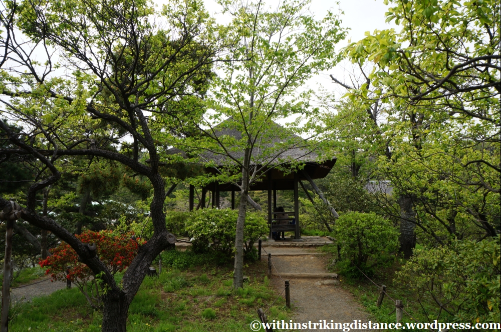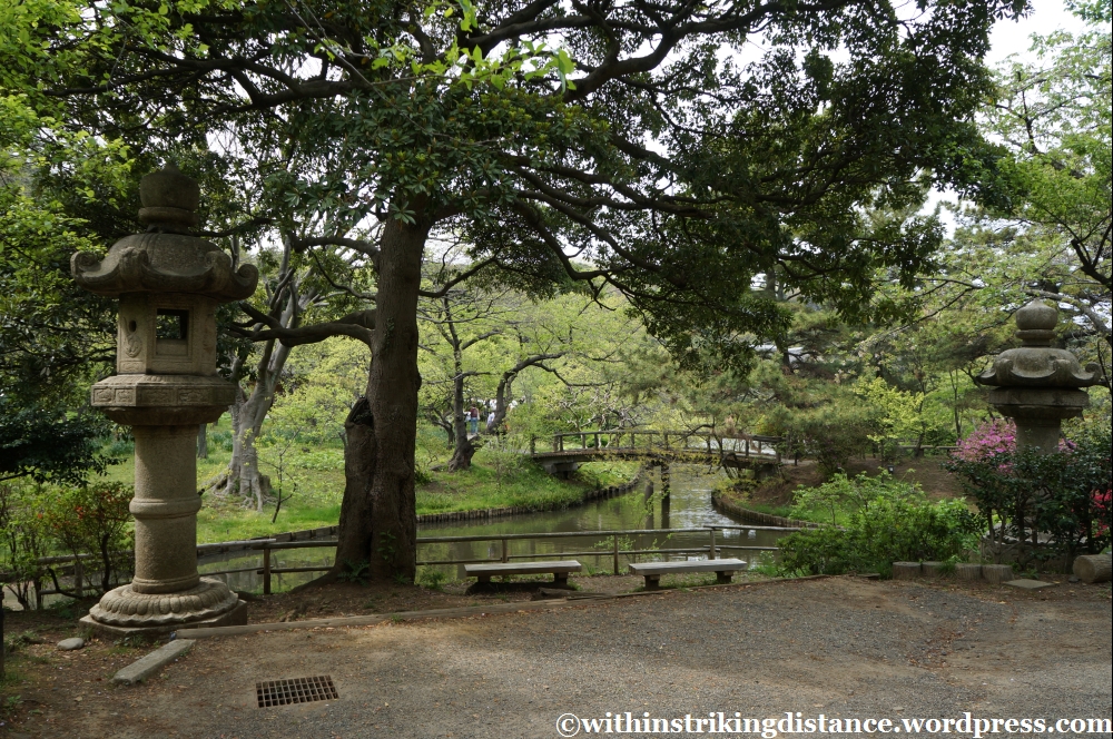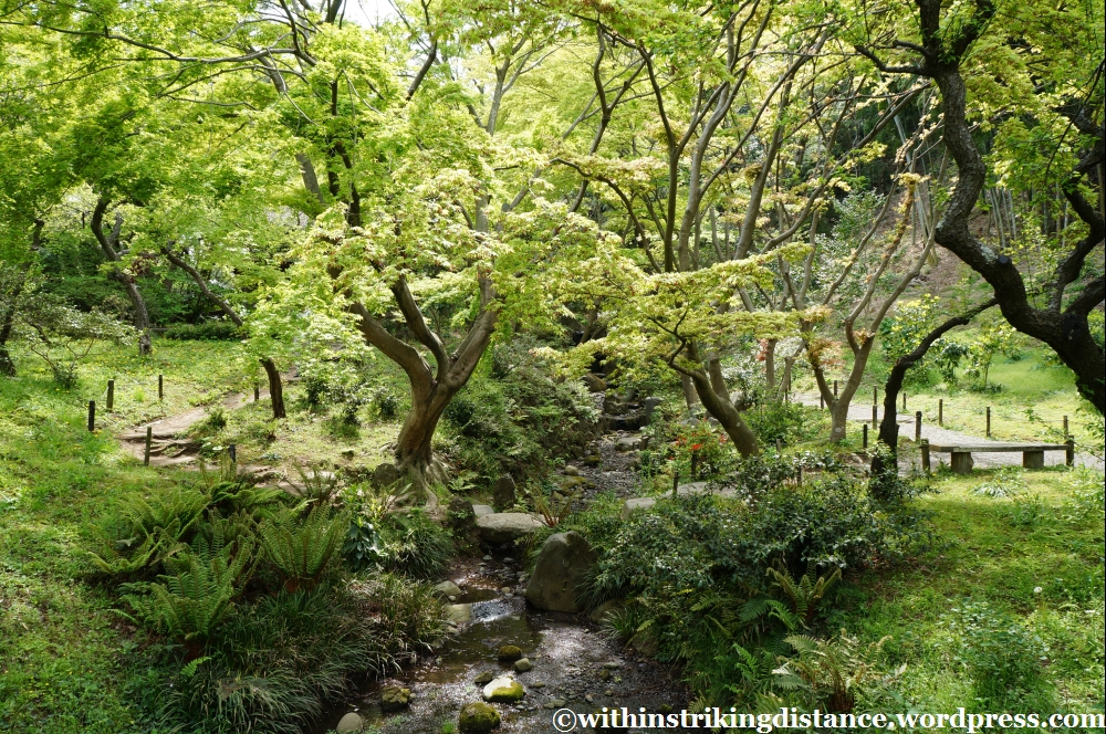 In this part of the country, the delicate blossoms of sakura trees have given way to the fresh verdant foliage of spring. I must admit, after staring at so many clouds of white and pink flowers throughout my journey, it actually comes as a bit of a relief to enjoy simple, lush greenery in a seemingly natural setting. I say “seemingly”, because this is a man-made garden after all and no doubt these woods have been landscaped to within an inch of their life (the veneer of wild, untamed nature notwithstanding), but with no towering skyscrapers in sight or city noises within earshot, it’s certainly a convincingly rural retreat from the bustle of the heaving urban area just beyond the gates.