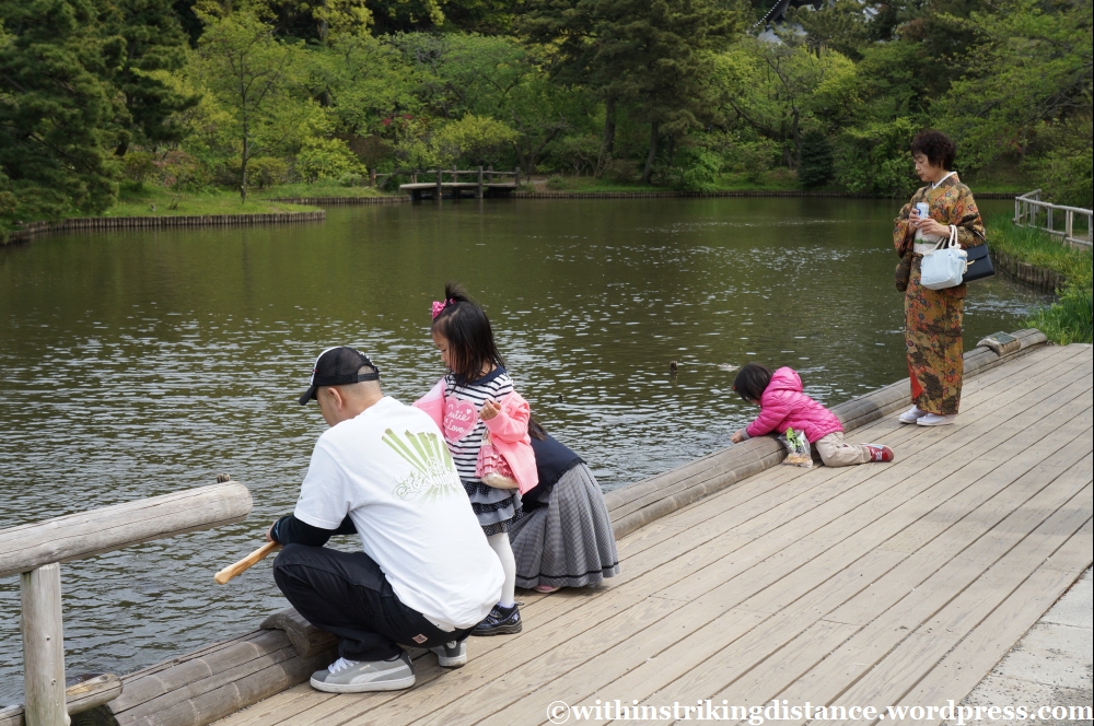 Contentedly refuelled on tea and sweets, I made my way back to the area of the central pond. There were quite a few people out and about along the water’s edge: feeding the fish, chatting with friends, admiring the views, and generally just having a good time.
