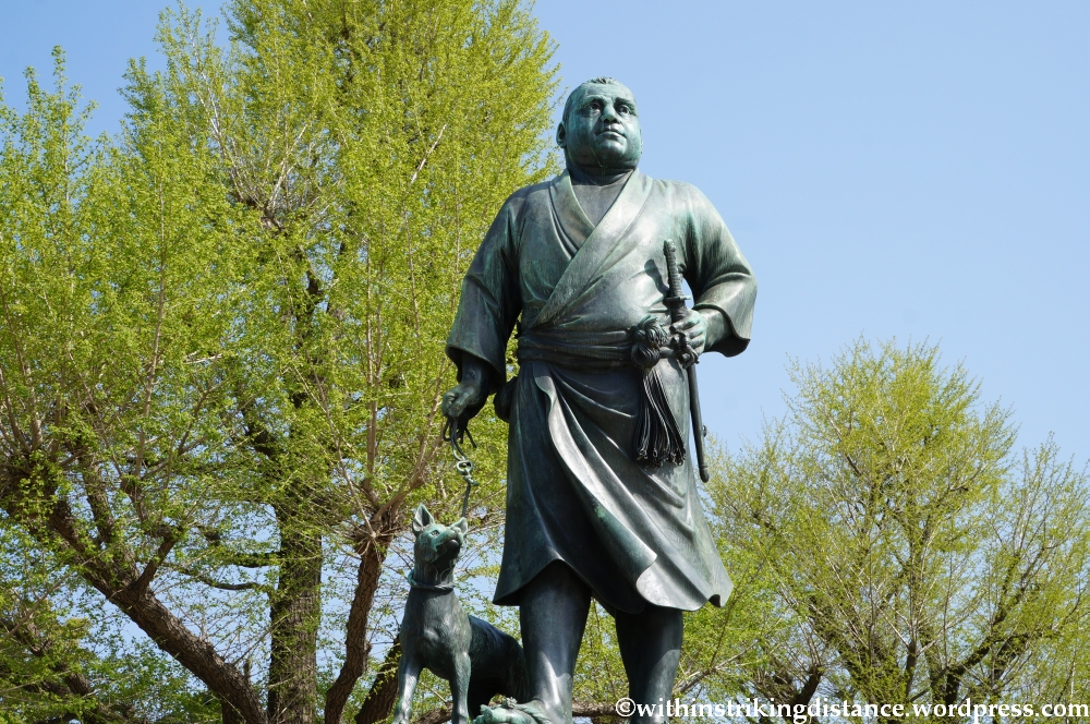 Saigō’s statue is a popular meeting place, and one of the first well-known landmarks I saw on my first trip to Japan. Great to see the old hero still looking in the pink – er, green – of health.