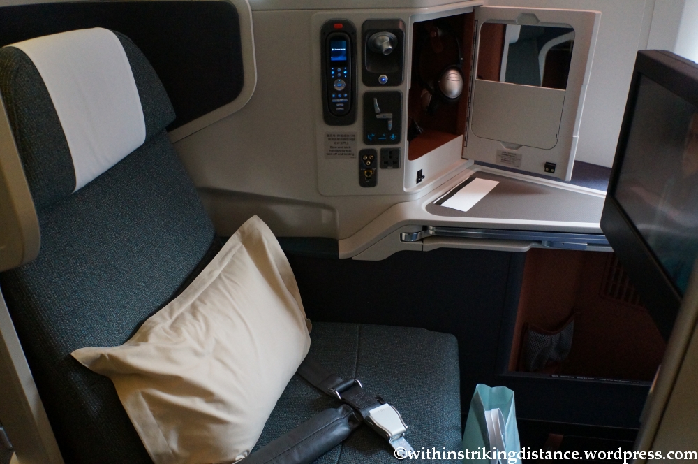 I’d just like to add that the seat seemed ever so slightly larger this time around. I could be wrong of course – relying on memory here rather than a scientific measurement – but I suppose it’s possible. The 777 is wider than the 330 after all, and since CX has the same business class configuration in both models (4 seats to a row) there should be just a little bit more room available per seat.