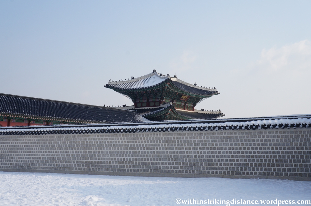 After Mass, I hopped onto Seoul’s metro network and made my way to Gyeongbokgung Station, on subway line 3. Emerging from exit 5, one of the first things that greeted me was the sight of beautiful tiled roofs peeking up from behind stone walls.