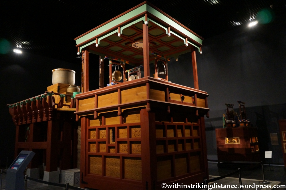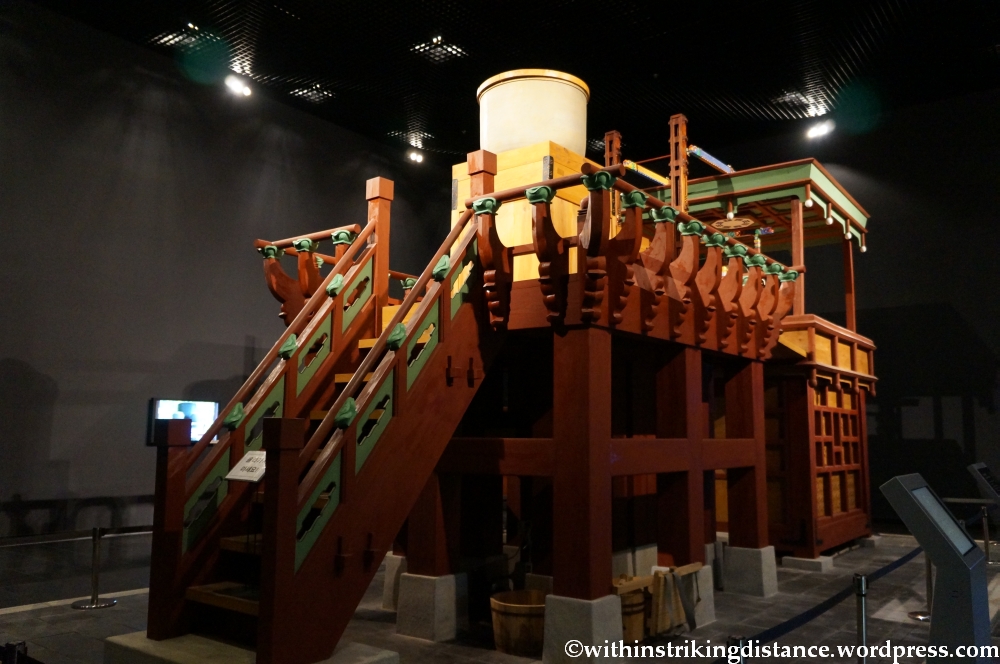 But perhaps one of the most interesting exhibits of all is a working full-scale reproduction of the Jagyeokru: a massive self-striking water clock built in 1434 on the orders of King Sejong. And when I say working, I mean working – there’s even a timetable posted nearby that announces when each of the clock’s different chimes will sound.