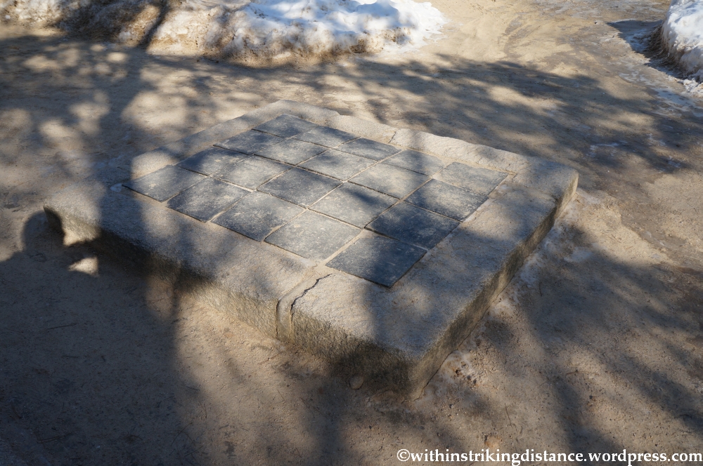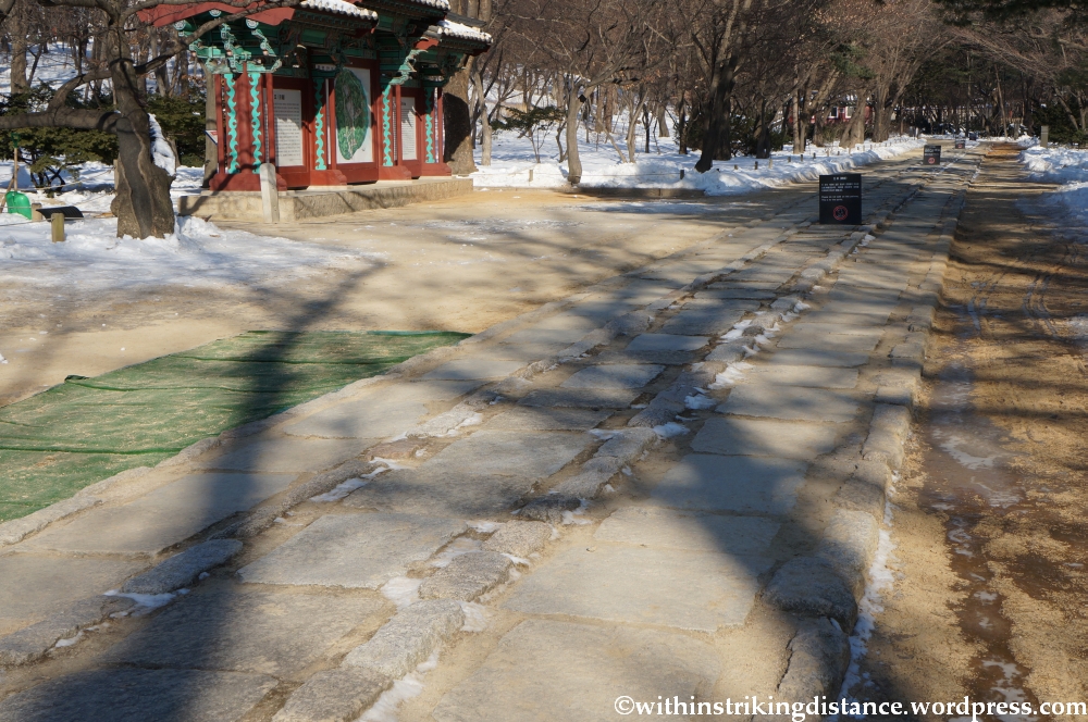 . . . across the snowy ground on the stone walkway. We were allowed onto the middle section this time, once used by the king – unlike the “forbidden” path which had forked off earlier.
