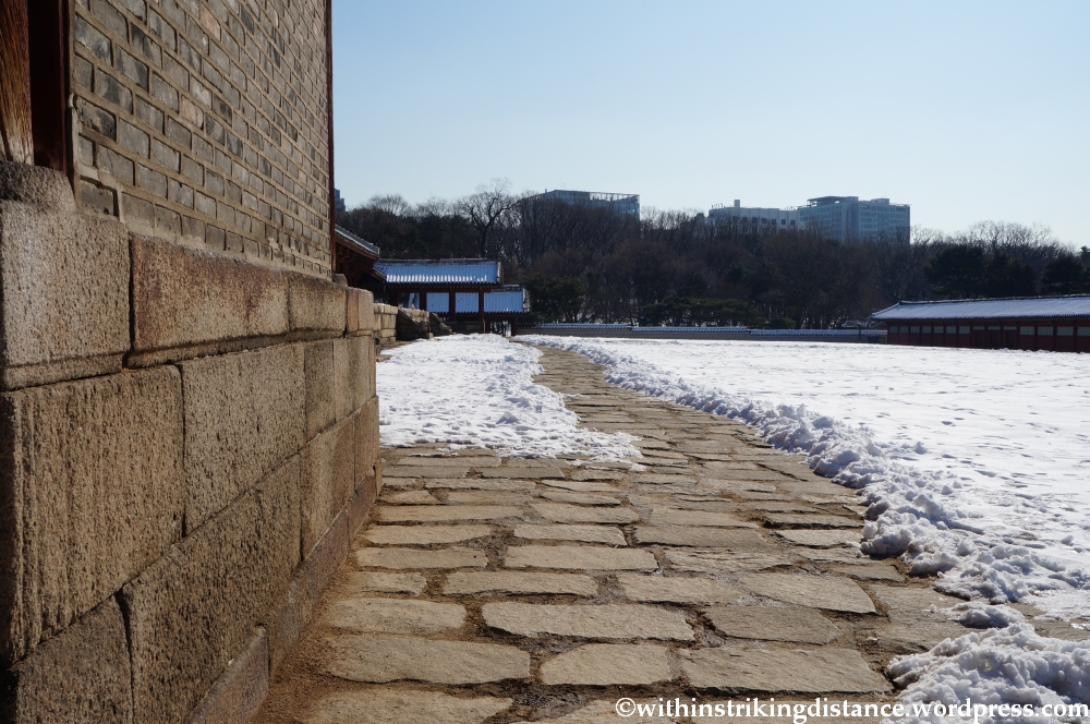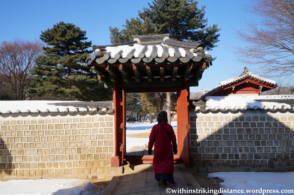 Passing through a side gate in the walls of Jeongjeon . . .