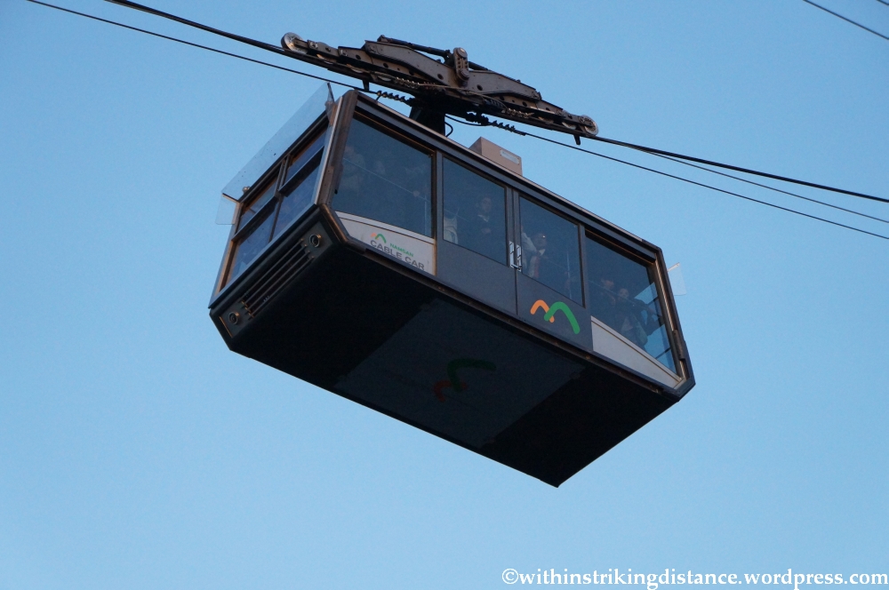 Near the top of the incline, a diagonal elevator running along sloped rails deposited us next to the base station for the Namsan cable car, where we caught sight of the ride that will take us even higher.