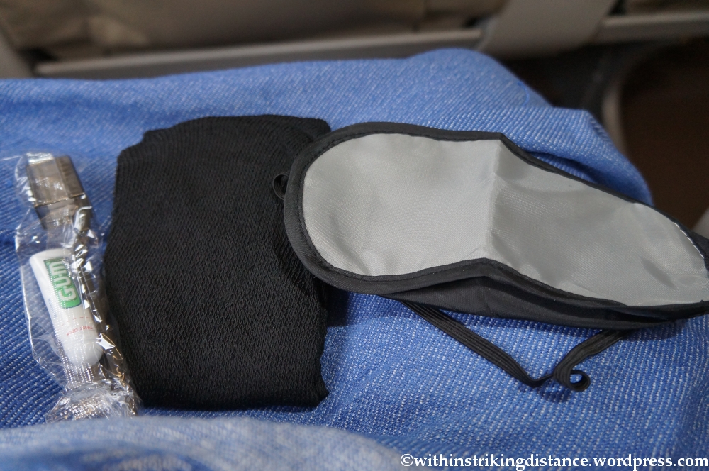 Another nice touch was the amenity kit I was offered after boarding – not something one normally expects on short regional flights. This one contained an oral hygiene set, socks, and eyeshade, all bundled into a zippered pouch.