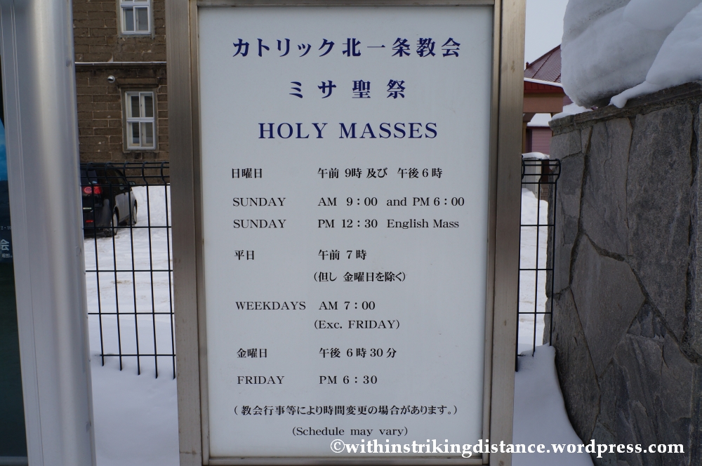 The façade offers a bit of extra protection to the venerable structure just inside it, which boasts of a splendid wooden interior that seems as if it had been built back in Hokkaidō’s frontier days. No pictures from within, though. I do take photographs in churches when the circumstances deem it appropriate, but this was just before Mass and the right thing to do was fall upon one’s knees and prayerfully prepare for the holy sacrifice ahead, not walk about the building snapping images of everything in sight like an overeager tourist.