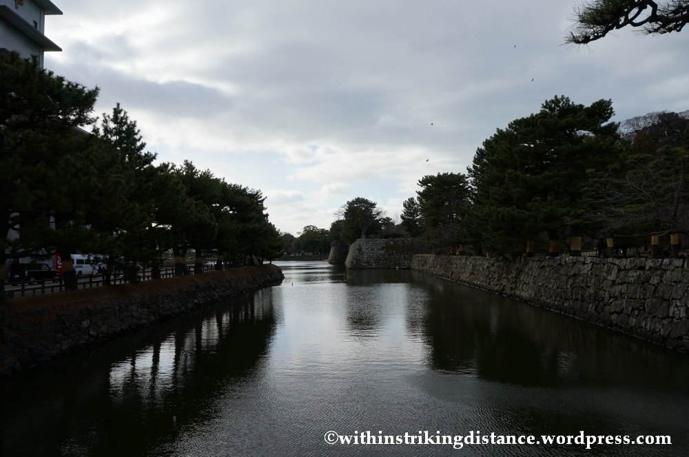 The castle’s tree-lined, stone-walled moat soon comes into view, with a cool winter breeze carving tiny ripples on its polished surface.
