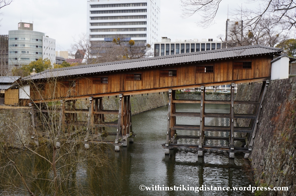 The castle lord’s lavish palace and its associated structures are long gone, but one of the complex’s most elegant features – the Ohashi-rōka, a sloping wooden bridge linking the castle’s Ninomaru and Nishinomaru enceintes – has been faithfully reproduced using traditional techniques and materials.