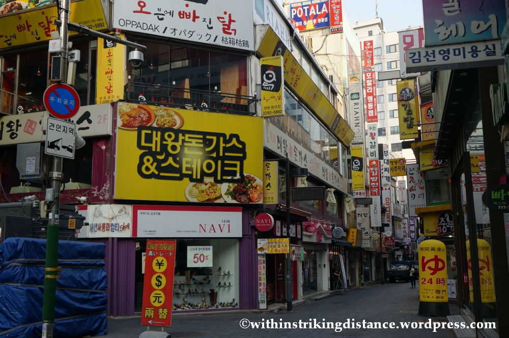 To get there, our merry band of travellers crossed Toegye-ro and walked at a leisurely pace across Seoul’s famed Myeongdong shopping district, which was blissfully deserted at this early hour.