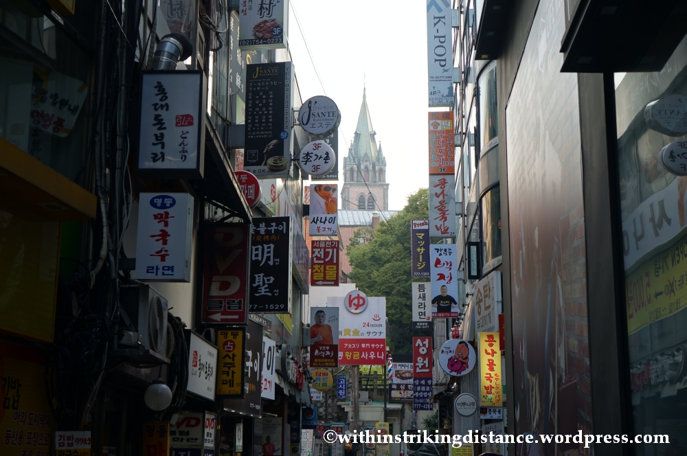 In the distance, the Gothic Revival tower of Seoul’s main Catholic church was visible even from a long way off, gently guiding us towards our destination.