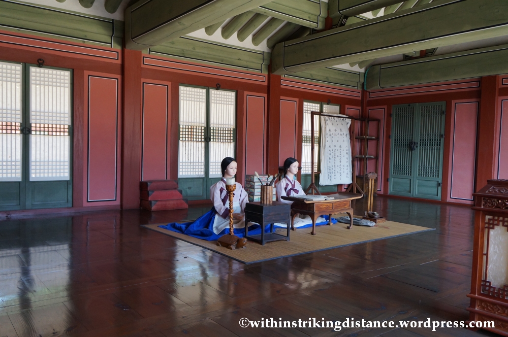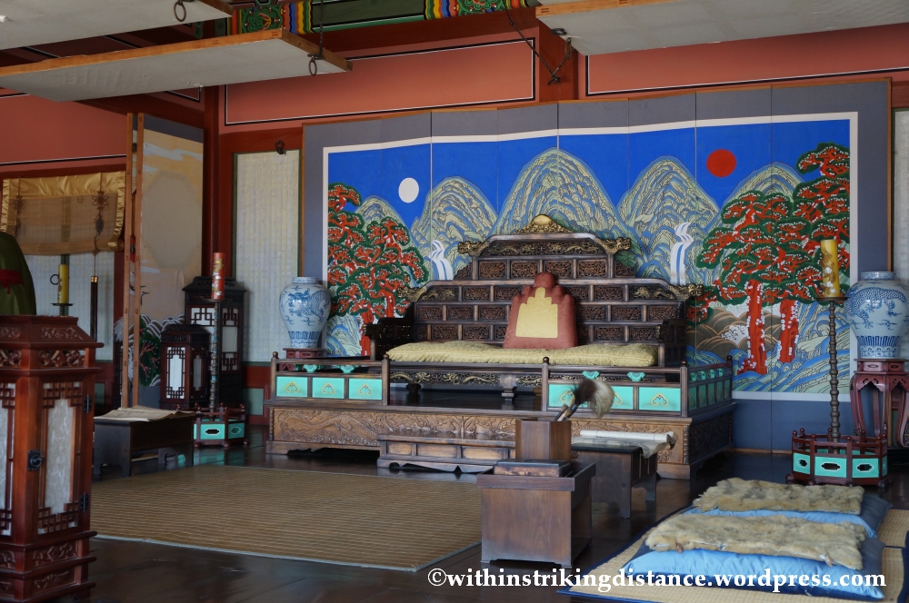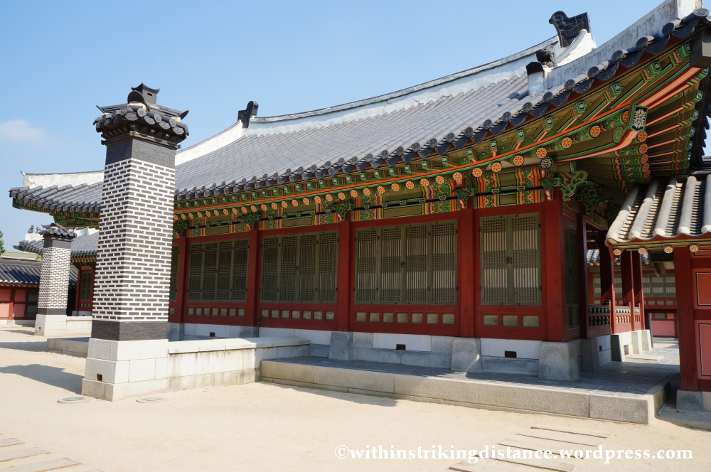 Near the palace complex stands the Hwaryeongjeon, a shrine dedicated to King Jeongjo that was erected not long after his death in 1800. The unpainted, weathered timbers of this small compound offer an interesting contrast to the brightly decorated – and rather fresh-looking – buildings of the newly restored palace next door.