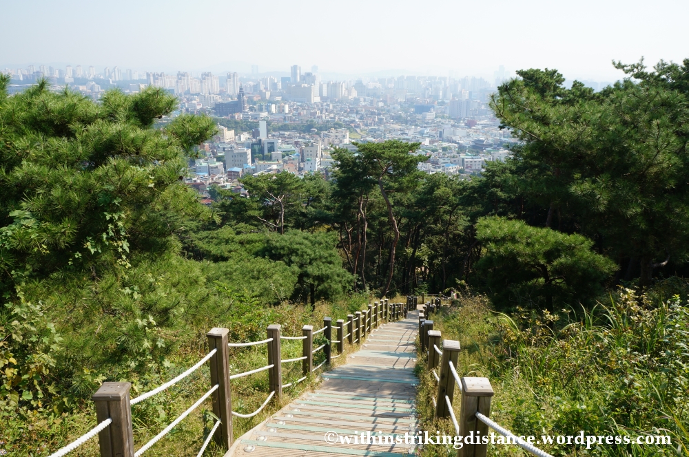 The wall keeps going on for miles from this point, but I didn’t have a lot of time to spare as the whole family was supposed to reassemble in Seoul later that day for a group meal. From Seojangdae, I took a shortcut through the wooded hillside in order to quickly reach the palace we saw earlier.