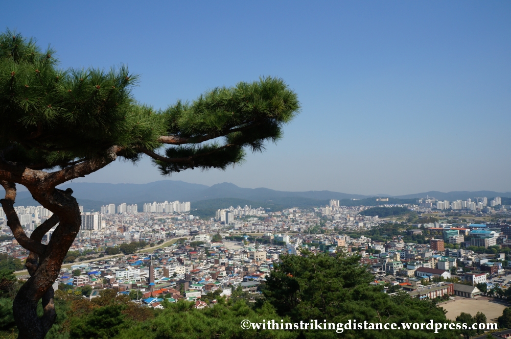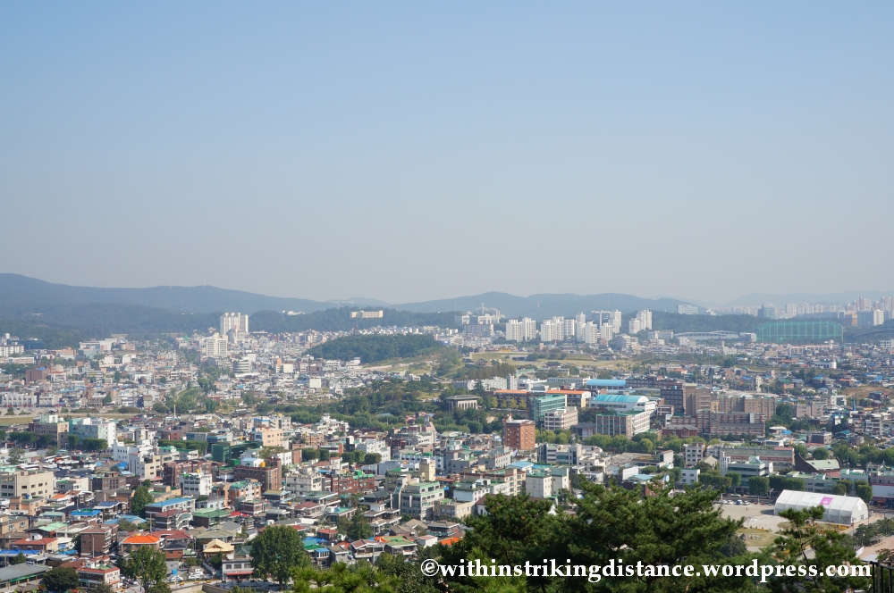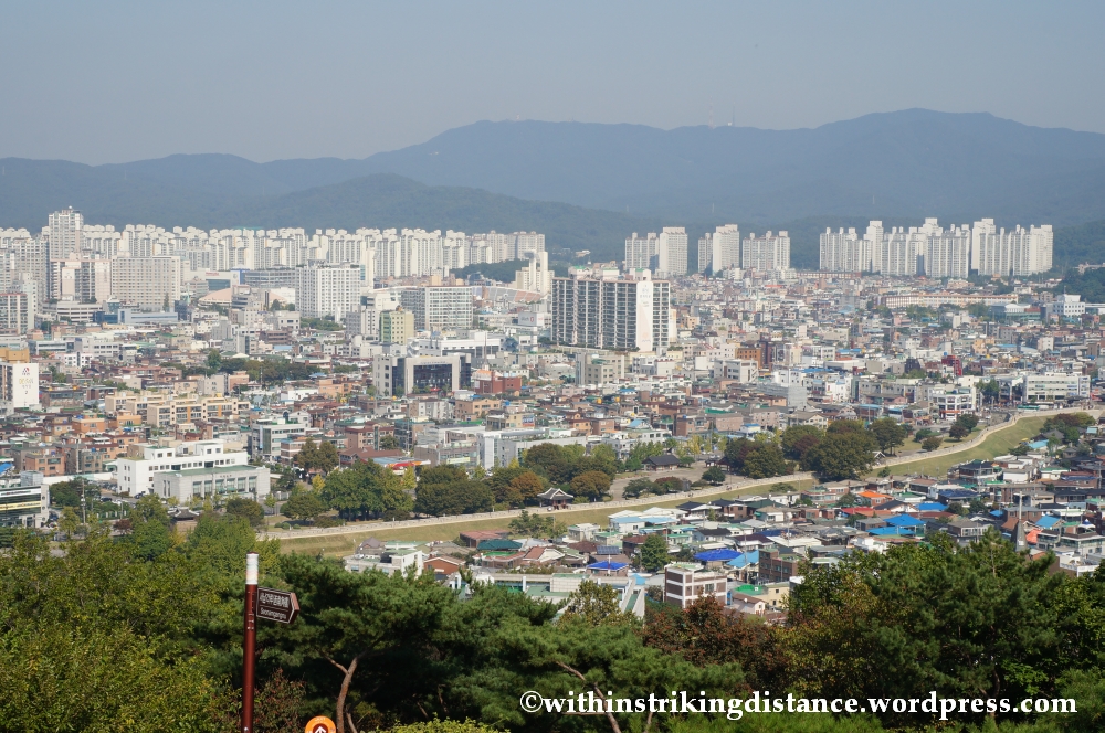 Exhaustion notwithstanding, I found it a rather pleasant walk, and as the elevation increased I’d sneak the occasional glance back the other way to see the marbled congestion of Suwon spreading out far below me.