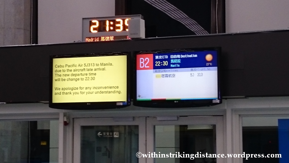 My ride back home was on Cebu Pacific flight 5J 313, scheduled to depart at 21:15. The plane was supposed to dock at gate A1, A2, or A3 (can’t remember which one exactly) at the northernmost tip of Terminal 1, quite a long walk from most of the airside shops and restaurants.