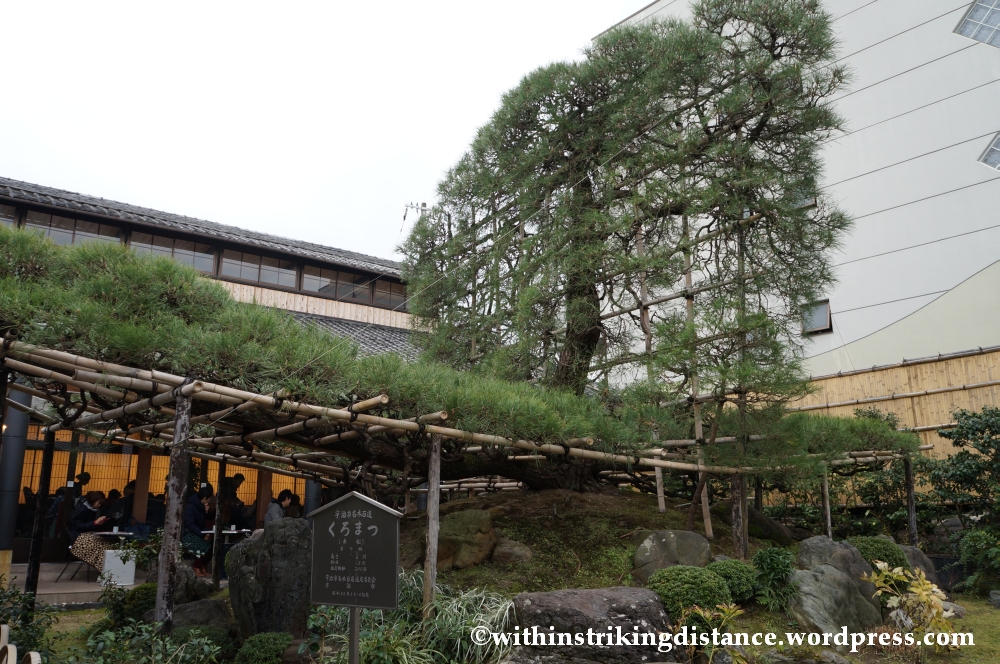 Towering over the courtyard garden was a 6-metre-tall kuromatsu tree, its trunk and branches supported by a large bamboo trellis. A nearby signboard gave its estimated age as 200 years, several decades older than the shop itself.