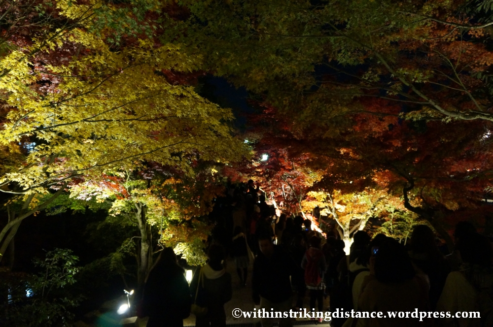 That target was Eikan-dō Zenrin-ji, a temple compound nestled against the wooded hills bordering the eastern side of Kyōto. I’m no stranger to the neighbourhood – I visited the nearby Nanzen-ji complex on my very first trip to Japan – but what drew me back to the area on this occasion was Eikan-dō’s annual autumn light-up, when the temple’s many trees are illuminated after dark and their brilliant fall colours are spectacularly revealed to hordes of eager visitors.