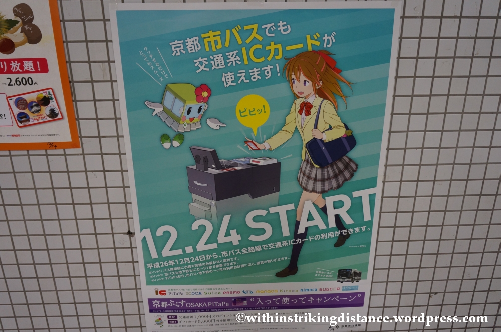 On my way back, I spied a poster informing the public that IC cards would become usable on Kyōto City buses from the 24th of December 2014. Note that the announcement pertains specifically to Kyōto City buses (市バス), the green-coloured ones that ply routes in the city centre, so presumably the red Kyōto buses (note: no “City” in the name) that serve more outlying areas still aren’t covered.