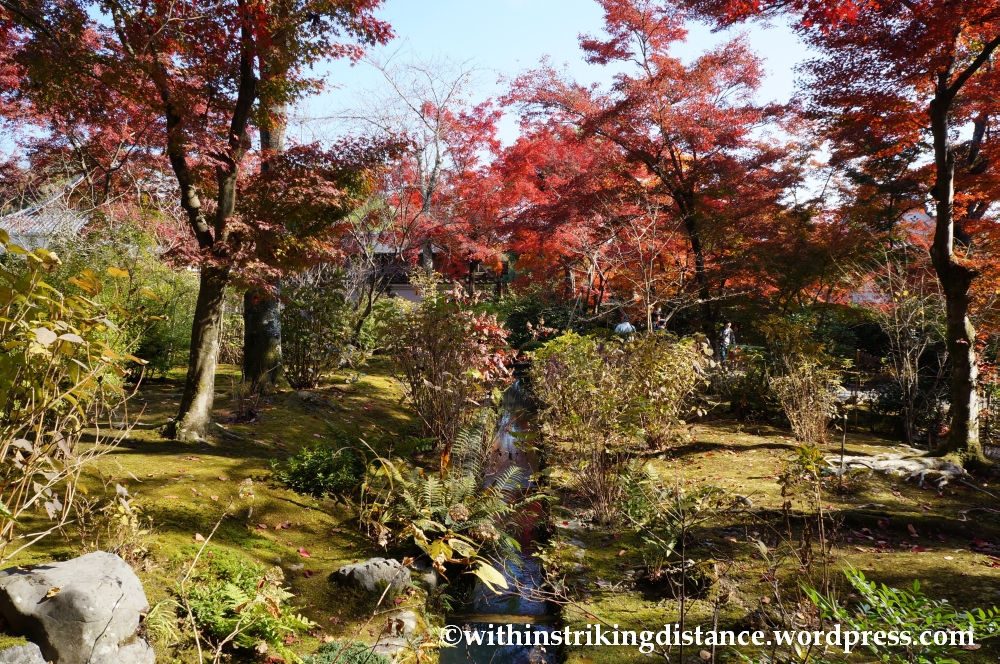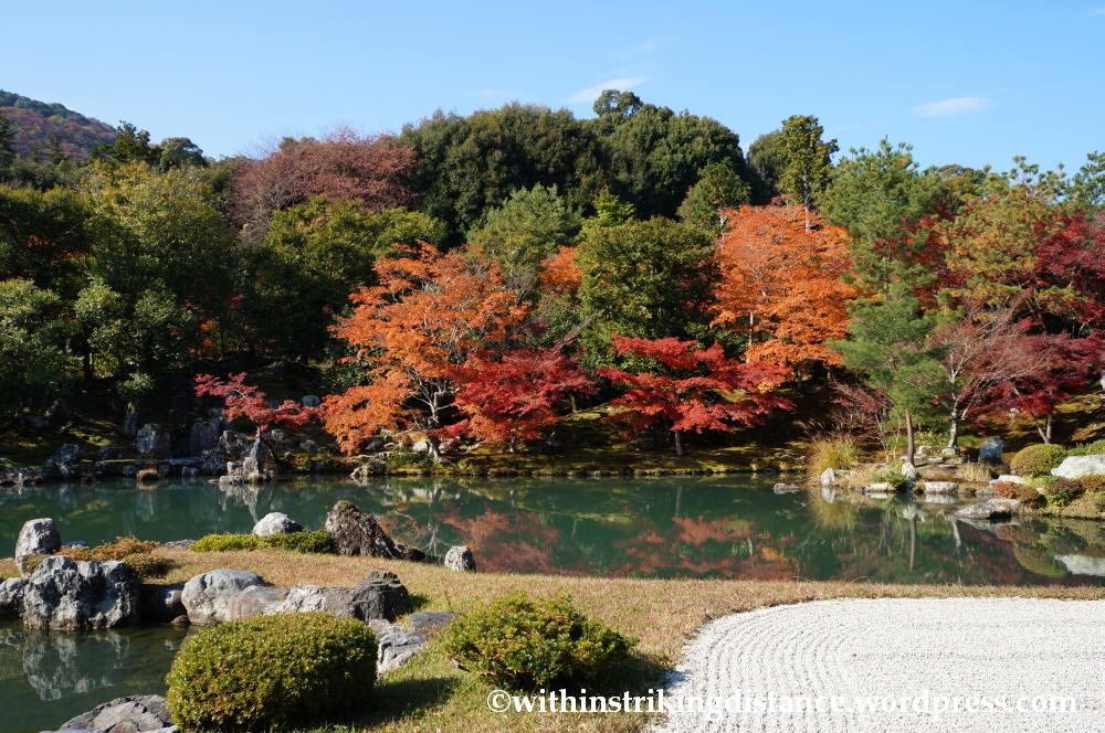 Tenryū-ji’s central pond was a particularly great place from which to appreciate the fall colours, not just of the trees in the temple’s own garden but of those growing upon the neighbouring hillsides as well. One might see in this a reflection of the concept of shakkei (“borrowed scenery”), in which the beauty of a Japanese garden rests not only upon what is compassed within its boundaries, but also on what lies beyond.