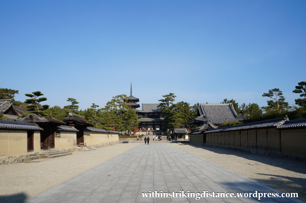 From the southern entrance, we walked along a stone-paved path flanked by tile-roofed walls in order to reach Hōryū-ji’s western compound, the Sai-in.