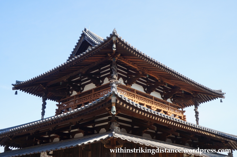On our way out of the central compound, we passed through Hōryū-ji’s long higashi kairō (east corridor). Normally one wouldn’t pay much attention to a mere temple corridor, but at over 1,300 years old, this was a treasure in its own right. Indeed, due to their inestimable historic and artistic value, all of the main features of this enclosure – the main hall, the pagoda … yes, even the surrounding corridors – are officially-designated National Treasures of Japan.