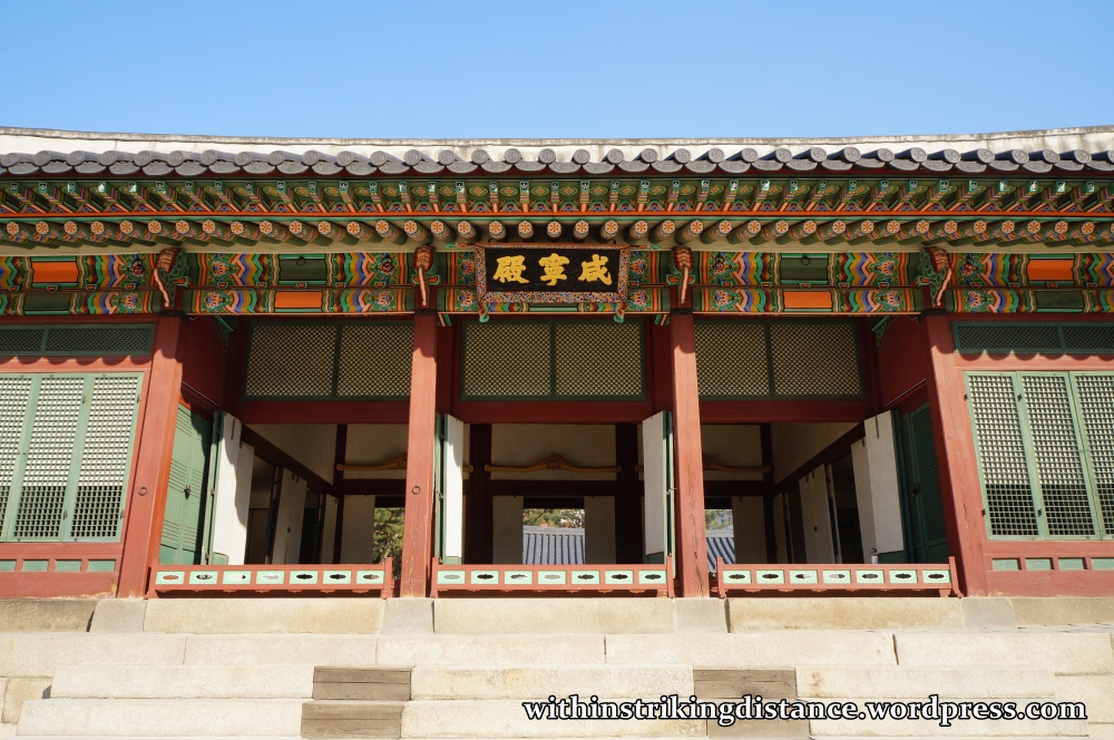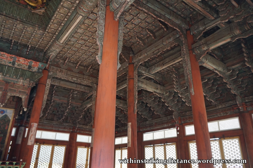 Standing in the northern part of the palace compound is Jeonggwanheon, a pavilion for banquets and (interestingly) coffee-drinking sessions, built in 1900 to the designs of a Russian architect. Although chiefly Western in style, distinctly Korean elements were also incorporated into the decorative scheme. For example, images of bats – an auspicious animal associated with good fortune and longevity – appear quite prominently in the gold-painted panels surrounding the veranda.