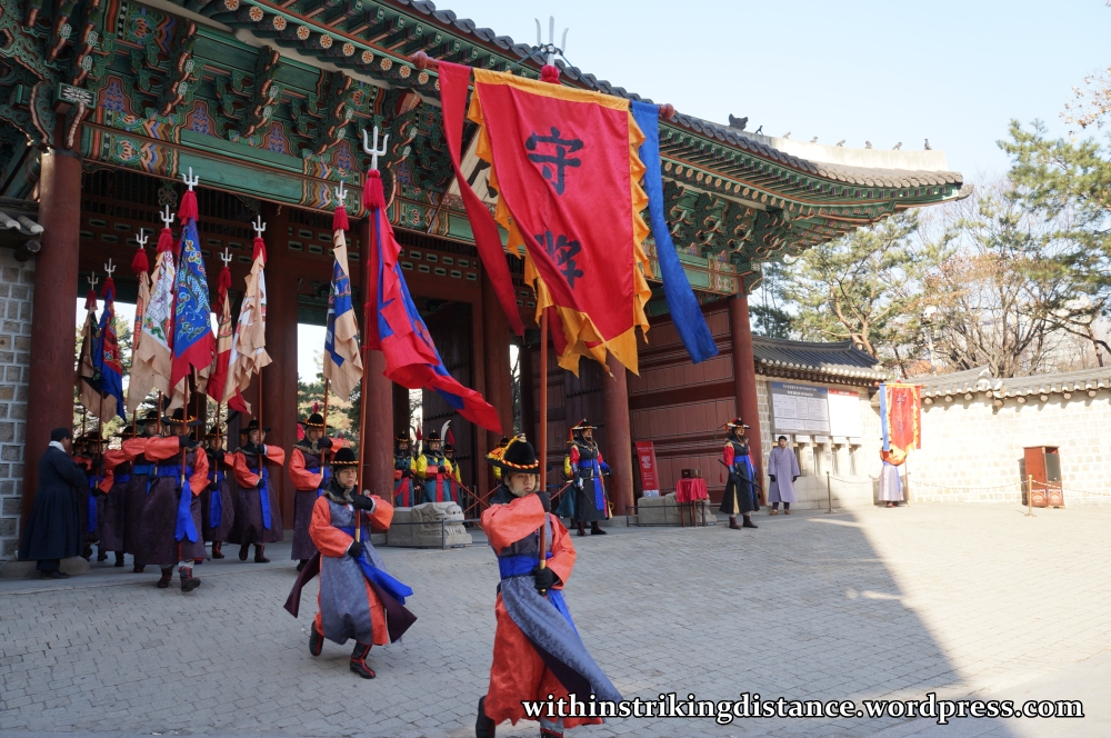 Later, I rushed back towards the main gate to watch the regular Changing of the Guard. I’ve also seen this detailed re-enactment performed in front of Gyeongbokgung, but the one at Deoksugung seemed a bit grander and appeared to involve more soldiers (though this could have been just an impression made by the somewhat smaller setting).