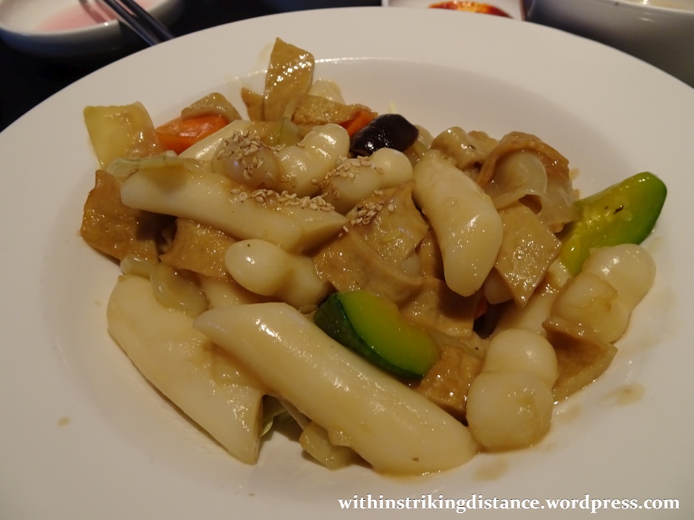 My selections: a hearty vegetable bibimbap and some tteokbokki.