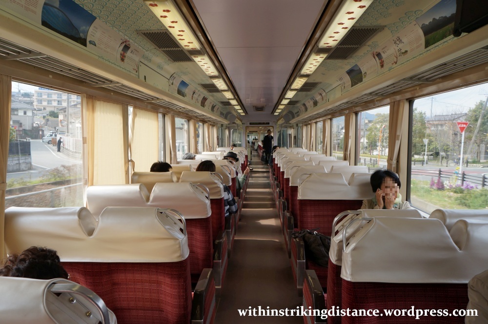 Unlike some tourist specials in Japan or elsewhere (like this one I rode in Korea, for example), “Tabito” is more of a themed train than a full-on cruise train. There aren’t any special services on board, like buffet cars or tea rooms, but given the short distance involved – less than 30 minutes from Fukuoka to Dazaifu, and just 5-7 minutes or so between Futsukaichi and Dazaifu – there really isn’t much point in installing anything more that what I saw on this brief ride.