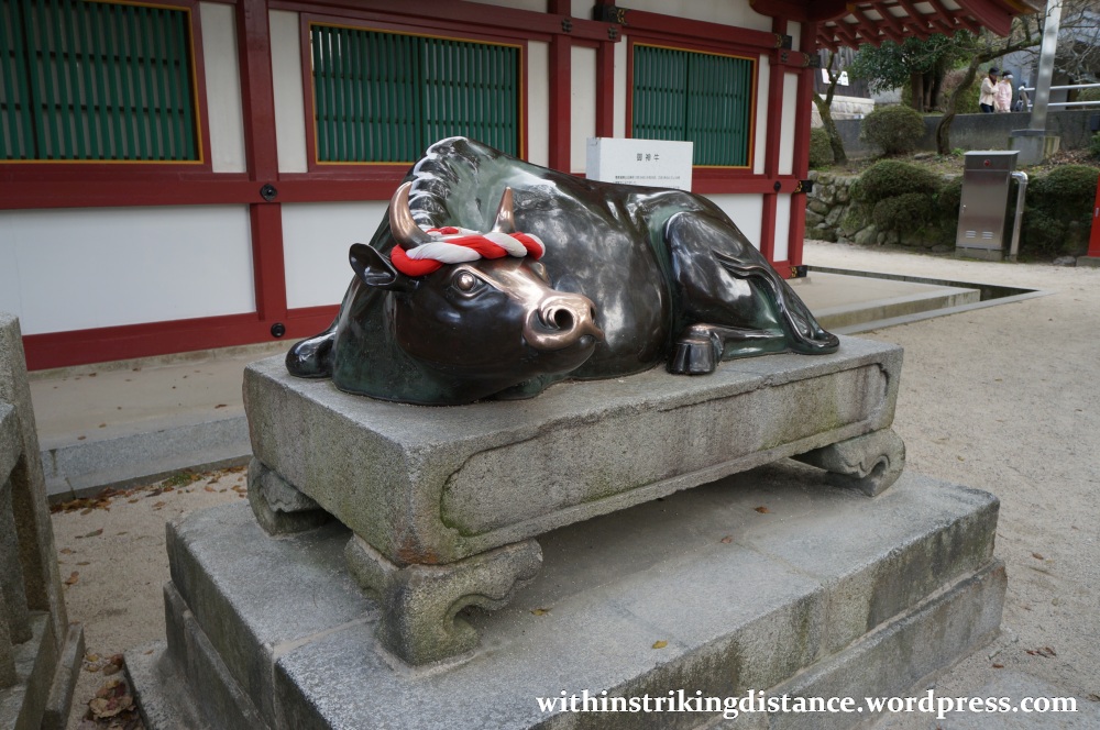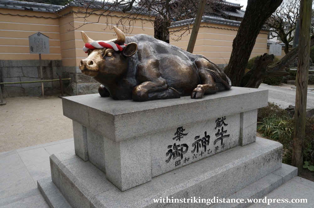 Because of Michizane-a.k.a.-Tenjin’s traditional association with learning, this and other Tenman-gū shrines elsewhere in the country (including the famous one in Kyōto) are quite popular with students, especially when it’s time to sit their exams. This fact also explains away the polished gold tint on the snouts and horns of the shrine’s bronze bulls – burnished over the years by the reverent rubbing of countless grade-chasing pupils.