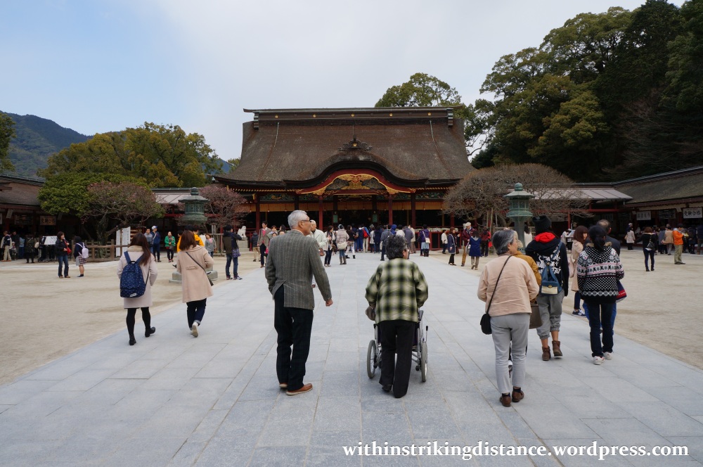 …one eventually reaches the sacred precincts of Dazaifu Tenman-gū (太宰府天満宮). Dedicated in A.D. 905 to the Heian-era scholar and statesman Sugawara no Michizane – who was deified as a patron of education under the title Tenman-Tenjin – this sprawling shrine was destroyed and rebuilt several times in the course of its long history; the main hall, for example, is relatively young at its age of a mere 424 years.