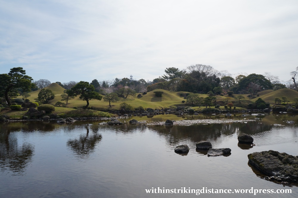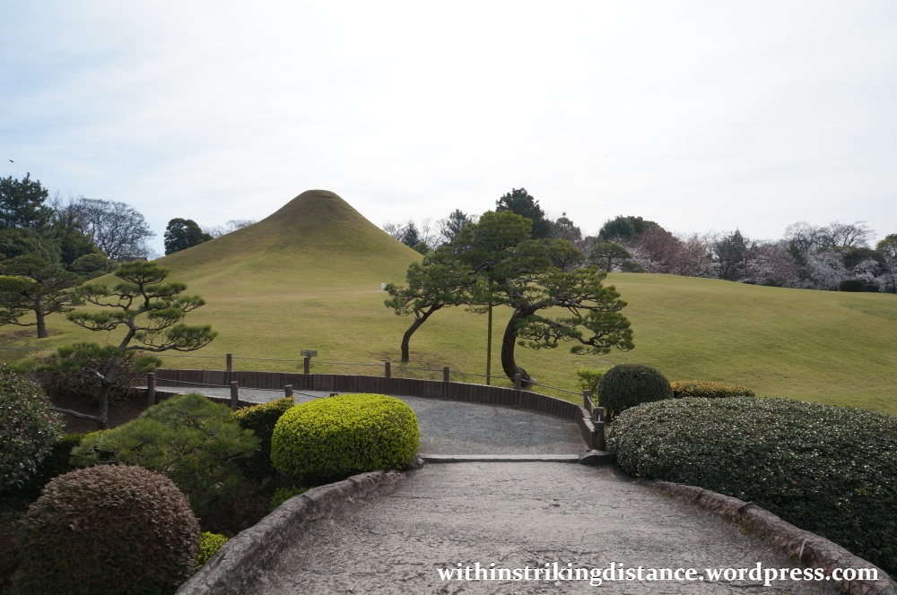 …the richly varied landscape features of this traditional garden are so arranged that visitors strolling along its circuitous walking path – which loops around and beyond a large spring-fed pond – can expect to see a different vista almost every time they pause to look. One of the garden’s most prominent features is a miniature representation of Mount Fuji, visible from various points on the route.