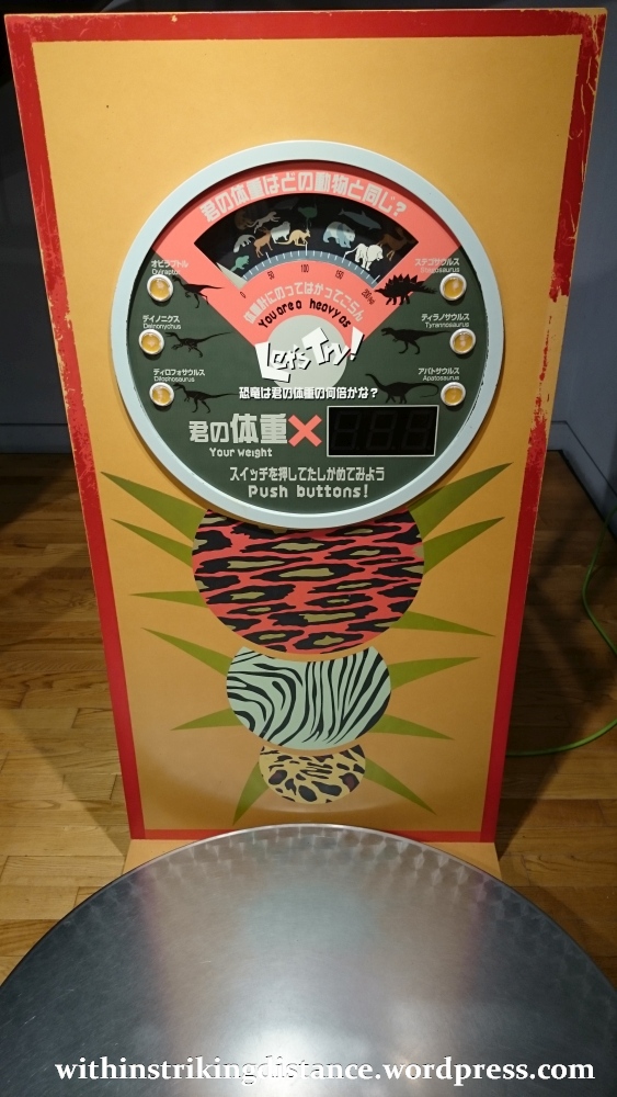 Thanks to this device, I discovered that about 400 to 500 of me would weigh the same as an Apatosaurus. (The machine is actually quite precise, but I wouldn’t want to give away my exact reading, haha.) More interesting are the comparisons with smaller dinosaurs, which weigh roughly the same or even much less than a full-grown human adult.