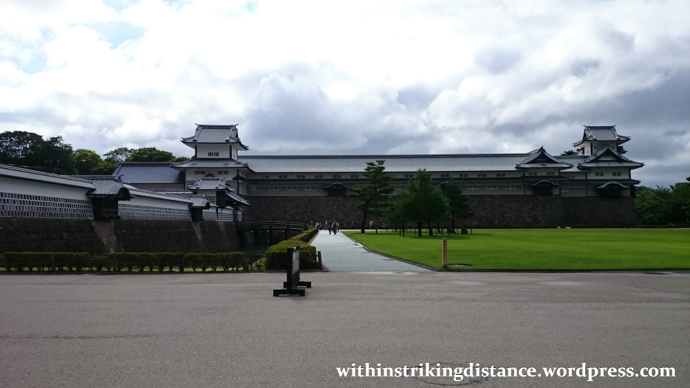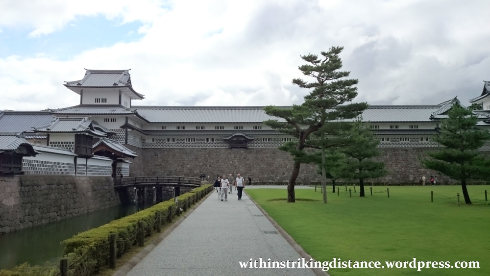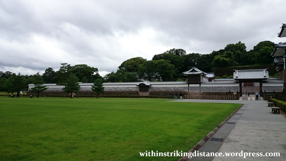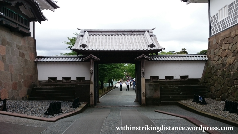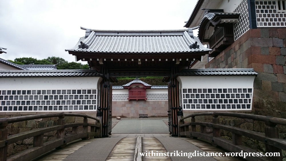 It’s possible to enter those buildings, so enter them we shall, and to get there we’ll need to pass through one of Kanazawa Castle’s main gates. Two we’ve already seen – the Ishikawa-mon and the Kahoku-mon – and the last, which is attached to the western end of a long wall separating the sannomaru and ninomaru enclosures…