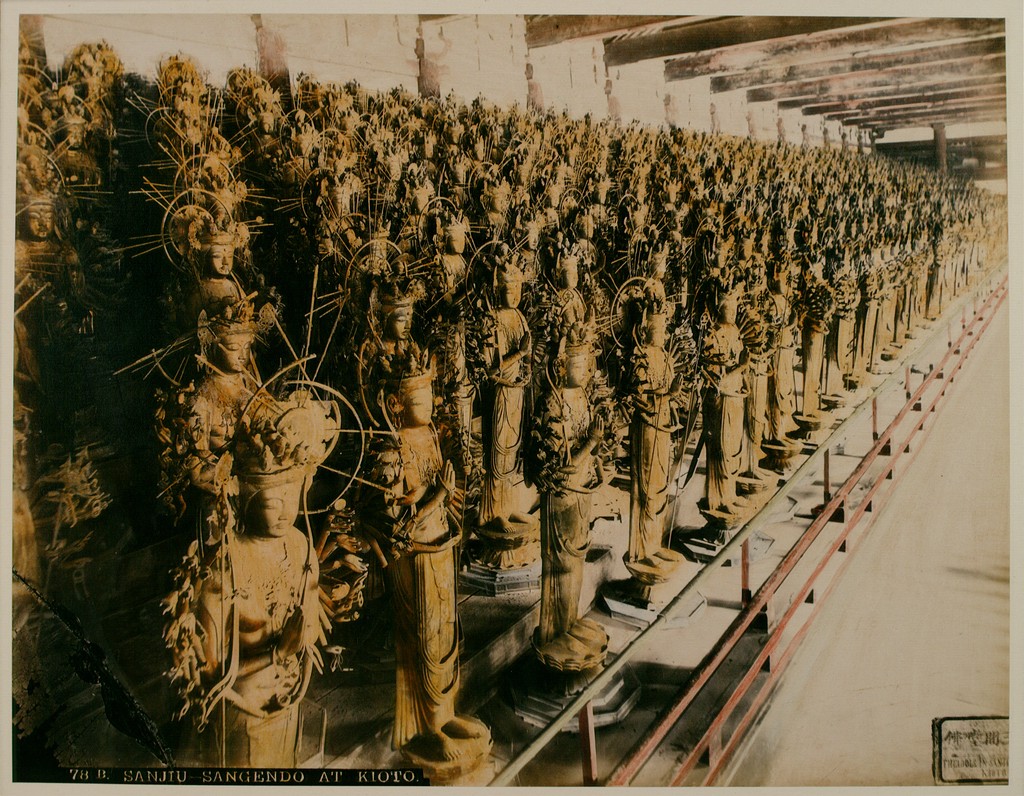 Although the temple’s official name is Rengeō-in (蓮華王院), and that of the famous building itself Rengeō-in Hondō (蓮華王院本堂, Rengeō-in Main Hall), this 13th-century structure is far more popularly known as Sanjūsangen-dō (三十三間堂). The name literally means “33-ken Hall”, with ken referring to a traditional unit of length representing the space between two supporting columns.
