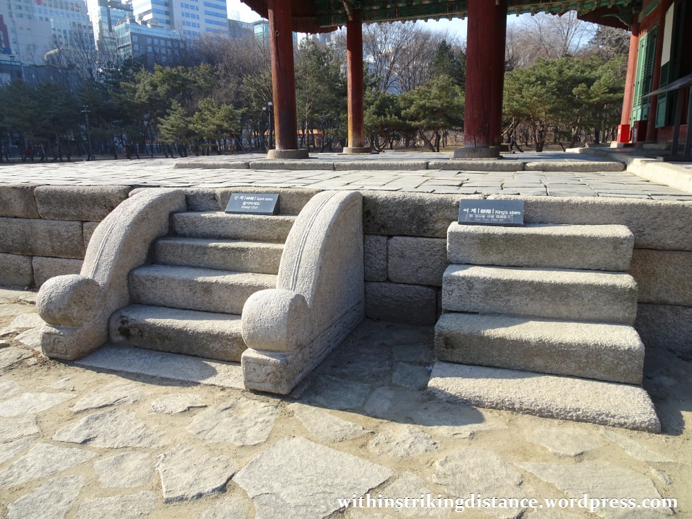 Note the double stairs built into the side of the memorial hall’s stone platform. Mirroring the double entrance path, here we find separate facilities for the dead and the living, with the decorated steps reserved for the deceased king’s spirit.