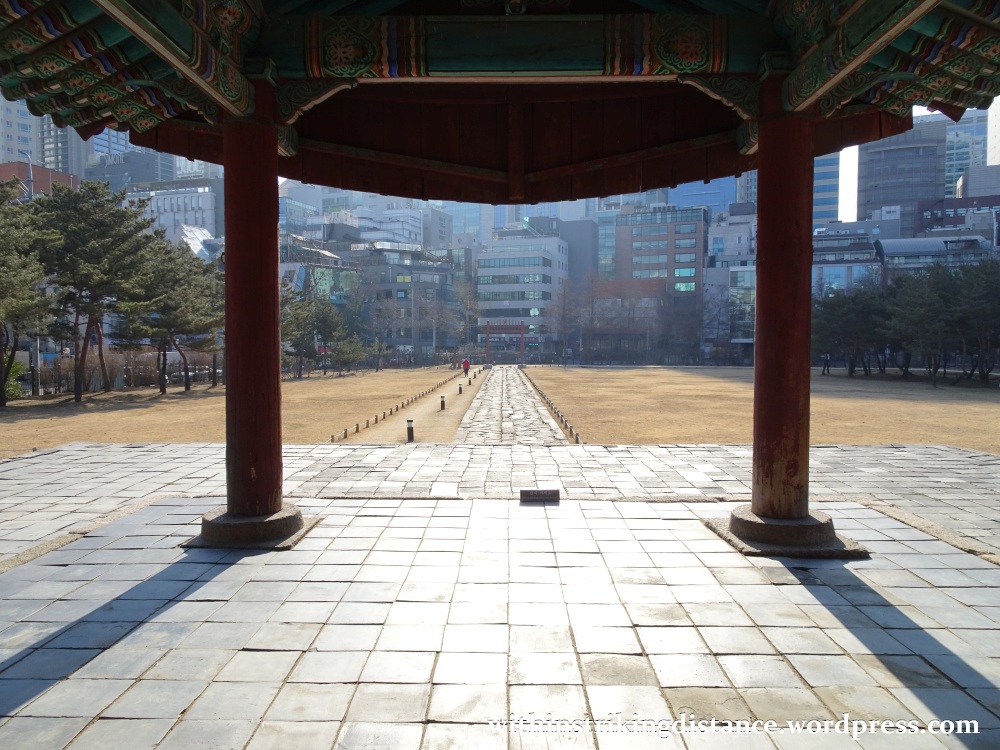 Walking back to the main gate, I passed the so-called jaesil: a “house of purification” where participants in ancestral rites prepared themselves to render the sacred services. Ritual implements, incense, and other supplies were also stored here – and with two large royal tombs in close proximity, one can well imagine why nothing less than a house-sized facility would be required.