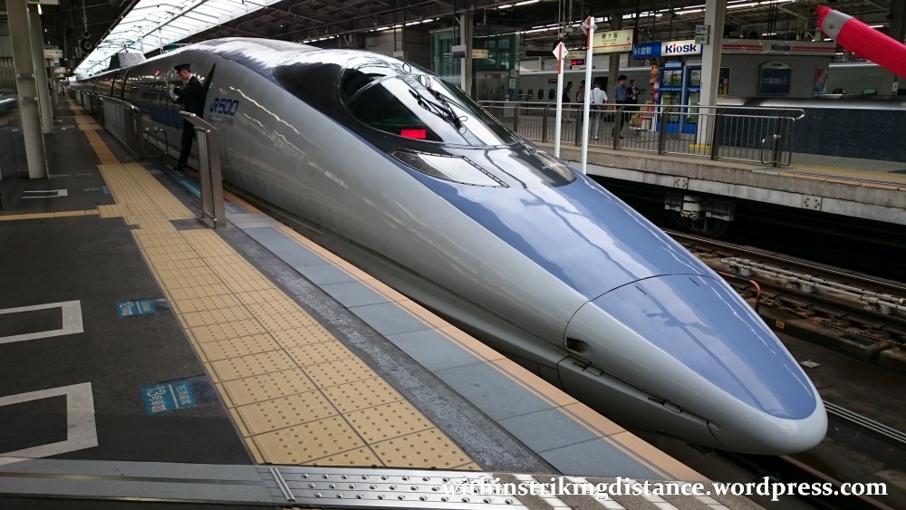 I was based in a hotel near Shin-Yamaguchi Station, from which Iwakuni – by way of its bullet train stop, Shin-Iwakuni Station on the San’yō Shinkansen – was just half an hour away. My ride was the Kodama 730 service, and the rolling stock was an ageing 500 Series Shinkansen…