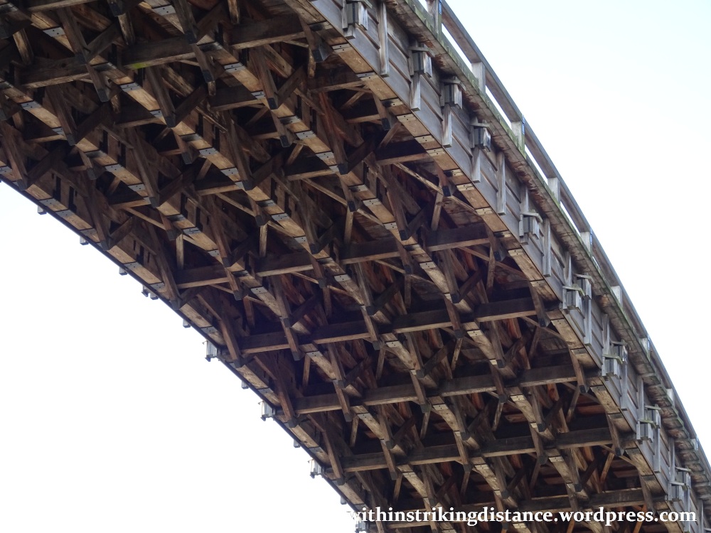 From Shin-Iwakuni Station, I boarded a bus that brought me to a stop near my first attraction of the day: the Kintai Bridge (錦帯橋, Kintai-kyō). Although bridges have spanned the Nishiki River at this spot since the early 1600s, offering a direct route to the main gate of Iwakuni Castle (of which we shall have more to say later), the Kintai-kyō as we see it today is largely the product of a late-17th century rebuilding. Carefully maintained and periodically reconstructed throughout the Edo Period, the iconic structure suffered from neglect during the straitened circumstances of the Second World War and was ultimately destroyed by floodwaters unleashed during a typhoon in 1950. Within just three years, the Kintai-kyō was completely rebuilt, and after a major refurbishment that ended in 2004, it’s as impressive a sight as it ever was.
